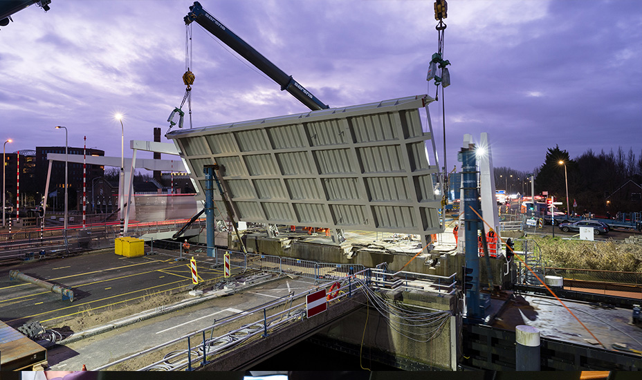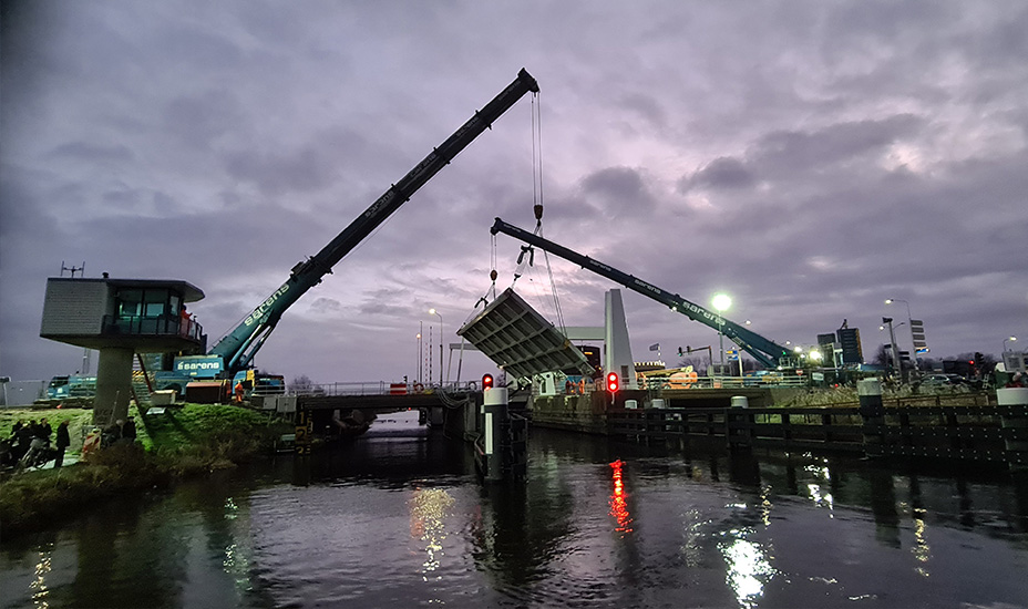 Vanaf een ponton is de brugklep in de Ringvaart op z’n plaats in de brug gezet . Met het plaatsen van de brugklep is de laatste fase gestart van de vernieuwing van de Cruquiusbrug. Naar verwachting zijn alle werkzaamheden eind maart klaar.