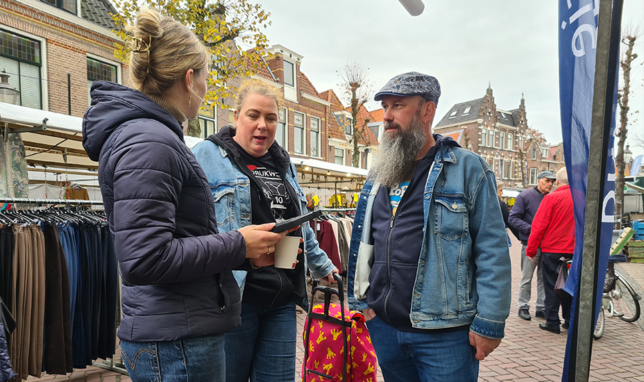 Collega’s van de provincie stonden dinsdag met aantekeningenboekje, tablet en gevulde speculaaskoek klaar om deze en andere stellingen voor te leggen aan voorbijgangers. Zo konden geïnteresseerden in een gesprek hun mening geven, maar ook direct de online Keuzewijzer invullen. Hierin komen 13 dilemma’s voorbij over waterzekerheid, voedselproductie, energiezekerheid, werkgelegenheid, natuur, gezonde leefomgeving en woningbouw. Deelnemers krijgen meteen te zien welke consequenties hun keuze heeft.