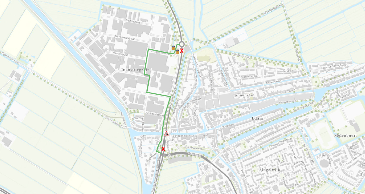 - Verkeer wordt omgeleid via de Westerbuitenbrug en bedrijventerrein Edam-West. Dit wordt ook aangegeven met borden