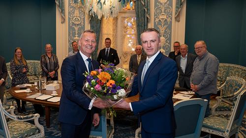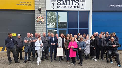 Commissaris van de Koning Arthur van Dijk reikte woensdag 16 april 2025 namens de koning het predicaat Hofleverancier uit aan Smits Installaties B.V.