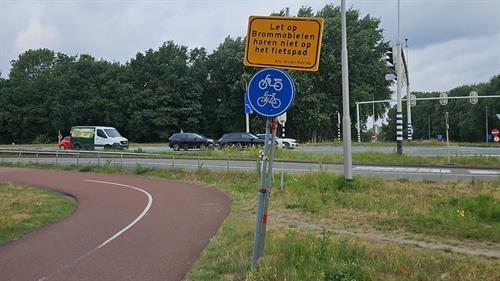 Tijdelijke borden op fietspad N522: 'brommobielen horen niet op fietspad'