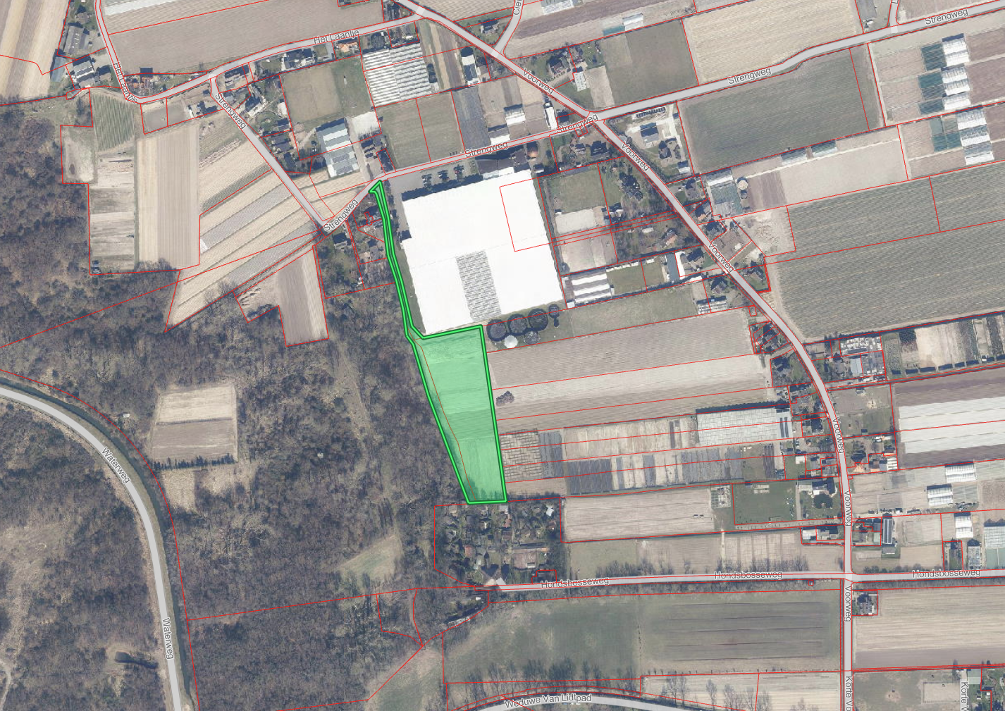 De provincie Noord-Holland is voornemens om een perceel bollengrond met toegangsweg te verkopen aan 2 partijen. Het betreft de percelen kadastraal bekend gemeente Heemskerk, sectie E, nummers 493, 502 en 1887. De totale grootte is 11.190 vierkante meter en is op onderstaande tekening weergegeven.