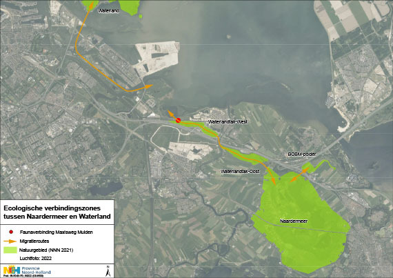 De Maxisweg in Muiden vormt op dit moment de laatste barrière tussen de 2 Natura2000-natuurgebieden. De aanleg van een faunaverbinding bij de Maxisweg zal een verbinding vormen tussen het Naardermeer en het Markermeer en IJmeer. Aannemer Dura Vermeer gaat de komende 2 jaar aan de slag om deze faunapassage te realiseren.