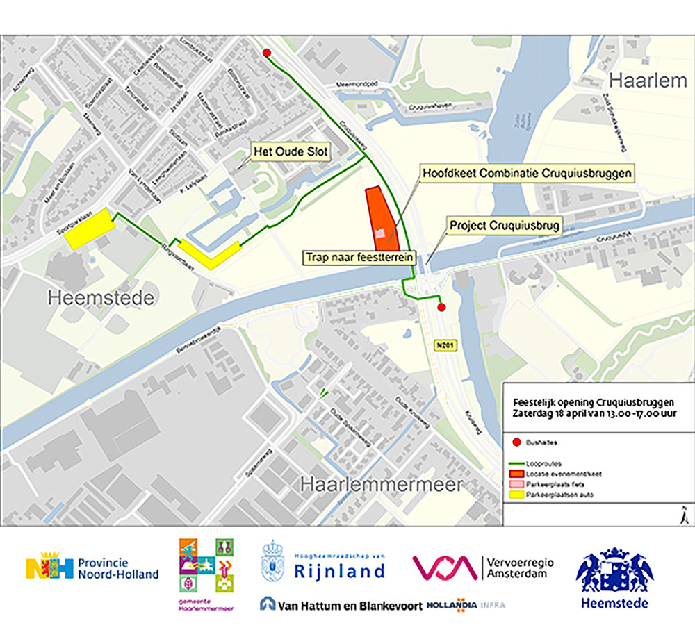 Om 15.00 uur wordt de brug met muziek feestelijk ingeluid. Bezoekers kunnen een kijkje nemen bij een expositie over de bruggen, een foto maken in de photobooth met de Cruquiusbrug op de achtergrond of meedoen aan oudhollandse spelletjes. Ook staan er verschillende foodtrucks met lekkernijen. Voor kinderen is er een speurtocht in het nabijgelegen Cruquius Museum en er is nog veel meer te beleven.
