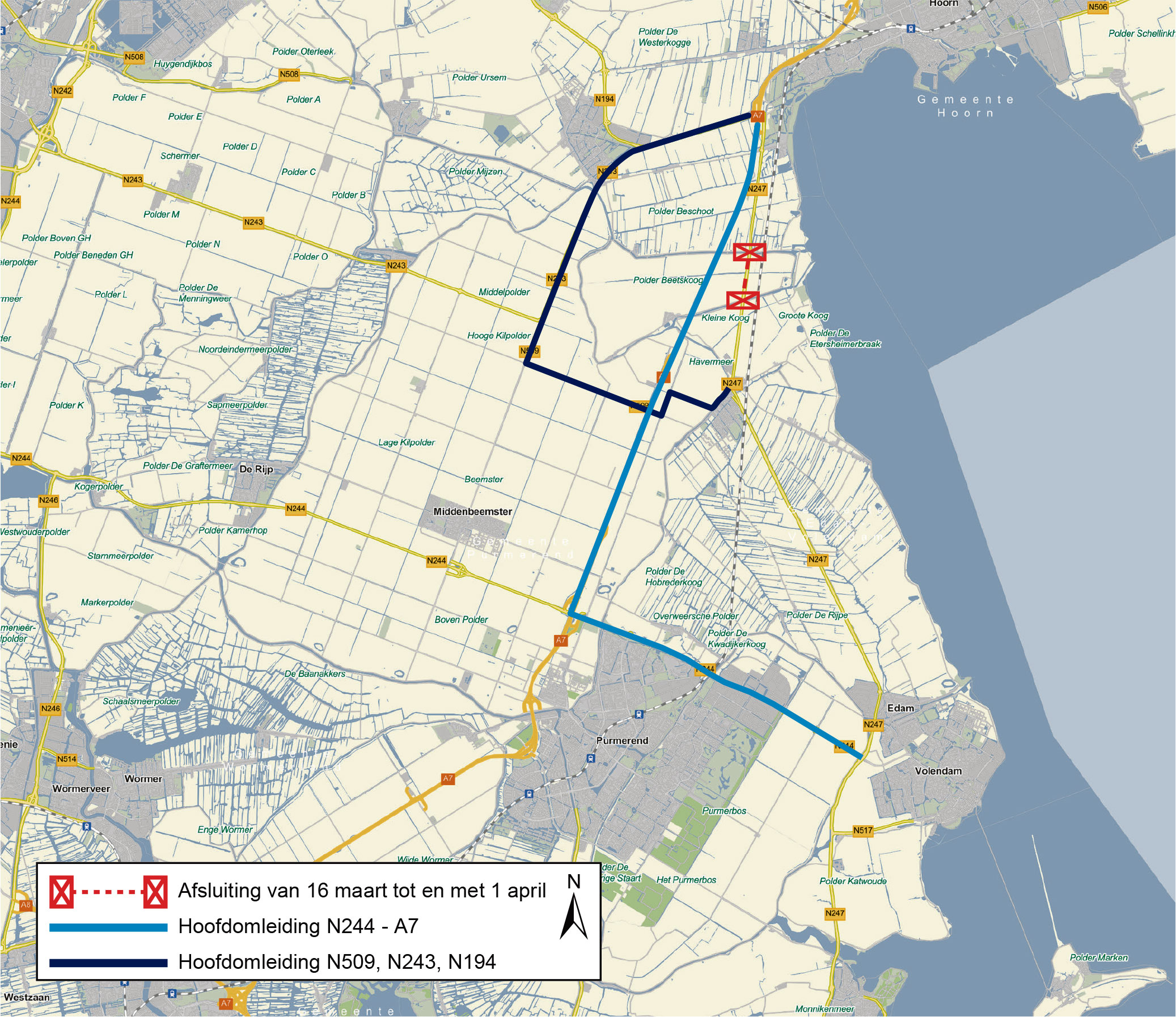 De N247 is tussen de brug bij de Dorpsweg bij Oudendijk en de brug bij Beets volledig afgesloten. Het verkeer volgt deze gehele periode een omleiding: